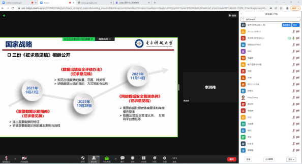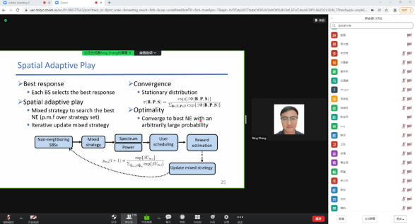 公司教务处处长郑啸教授致欢迎辞,公司副经理吴宣够教授介绍了公司科研、学科基本情况,本次论坛3个专题分组“网络与通信”、“视觉感知与深度学习”和“机器学习”分别由公司赵伟、刘恒、黄俊三位老师主持。来自国内外的300余名师生线上参与,在交流过程中,参与者与专家针对学术问题进行了深入的交流与讨论。会议最后,主持人向各位参与者表示了感谢,期待会后续进一步交流与合作。