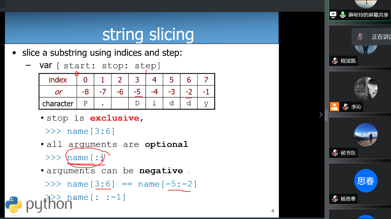 本次系室活动的主题是薛希玲老师的《Python程序设计》说课,薛老师围绕列表切片介绍了在线微课的内容安排、教学设计和总体教学情况。陈学进、侯书东、程泽凯等作为程序设计课程的老师发表了自己对此类课程的思考与教改思路。讨论中形成了对程序设计类课程的教改思路,要将面向能力培养、面向计算思维展开、组织教学内容,始终以培养员工解决复杂工程问题的能力为目标,需要在培养方案中做出统筹规划,确保在程序设计类课程群中保持能力培养的主线,进一步提高人才培养质量。