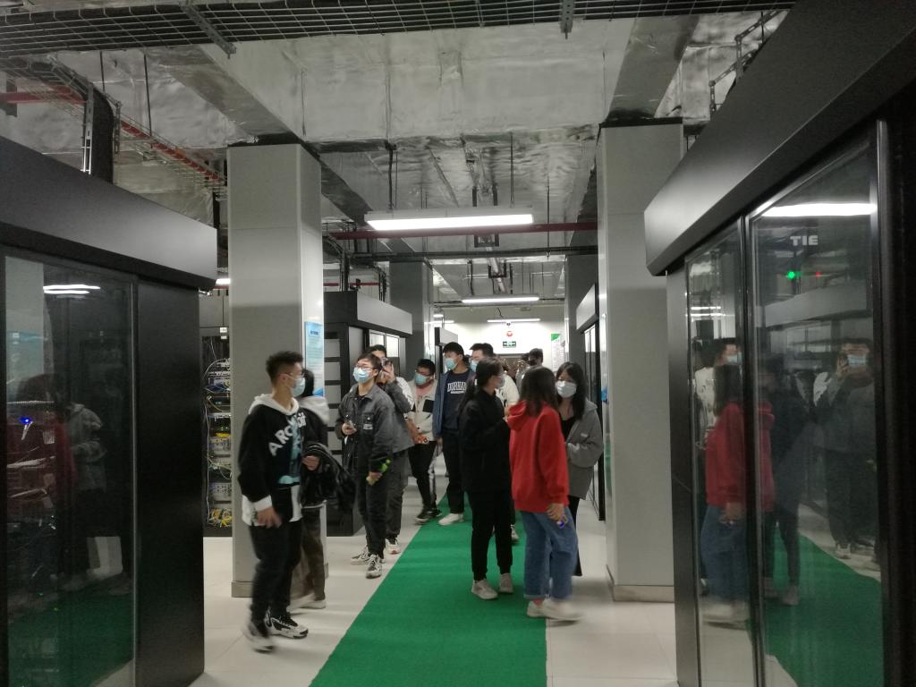 在安徽祥云科技有限公司,员工们实地参观了该公司的数据中心、冷水机组、冷却塔等设备,听取了公司技术人员关于云计算相关知识的技术讲座。通过实习,同学们了解了数据中心的网络架构、硬件架构,虚拟化技术、云平台,文档云、云视频会议、云视频监控、云数据库及Hadoop spark等知识。