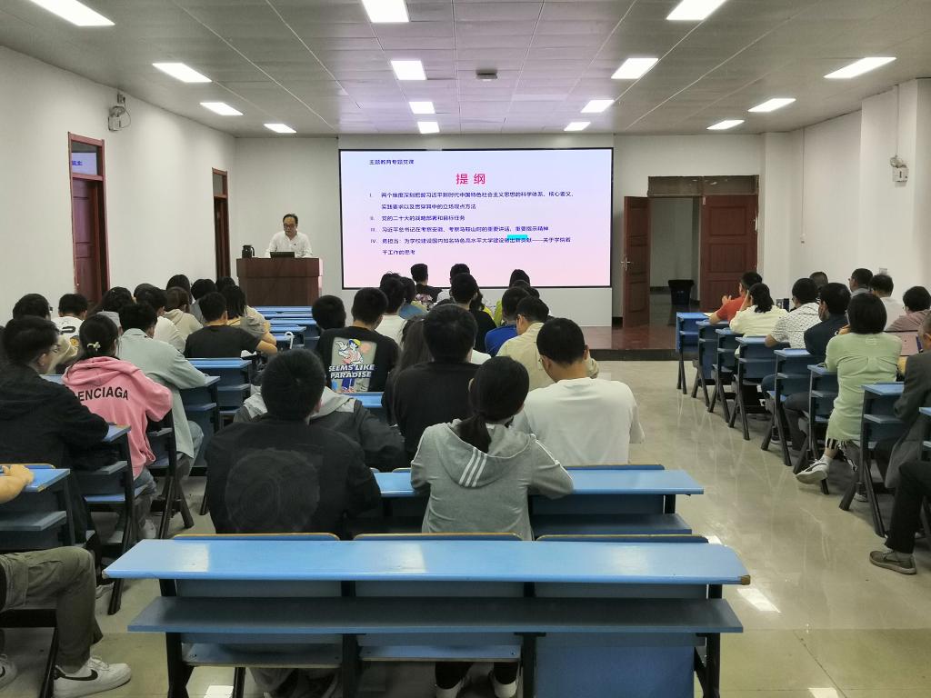 单桂锋强调,理论是实践的结晶,真理是时代的精华。全院上下要以学习贯彻习近平新时代中国特色社会主义思想主题教育为契机,深刻感悟历史使命,增强“四个意识”、坚定“四个自信”、做到“两个维护”。全院上下要立足实际行动,把学习贯彻习近平新时代中国特色社会主义思想同落实立德树人根本任务、公司发展紧密结合,确保主题教育取得实际成效,彰显对以学铸魂、以学增智、以学正风、以学促干的注释,以推动公司内涵式高质量发展,为公司建设国内知名特色高水平大学建设做出新贡献。