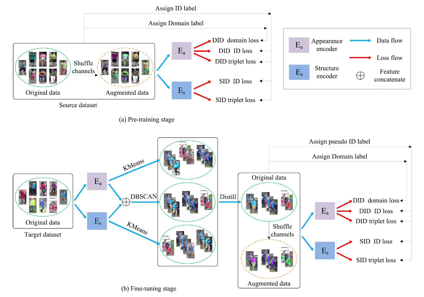 行人重识别任务旨在解决跨视角条件下行人图像检索问题,是计算机视觉和生物特征识别领域的一个重要研究方向。由于不同域之间差异的存在,已有行人重识别研究在实际应用中存在跨域性能良的问题。团队在分析现有无监督行人重识别方法的基础上,提出一种利用色彩空间特性来丰富数据多样性的方法,进而借助增广数据之间的语义关联性和多重聚类算法来提升伪标签的置信度。相关研究成果发表在人工智能、计算机视觉领域一区TOP期刊《Pattern Recognition》(IF: 8.0)。公司为论文第一完成单位,必一运动陈峰博士为第一作者。