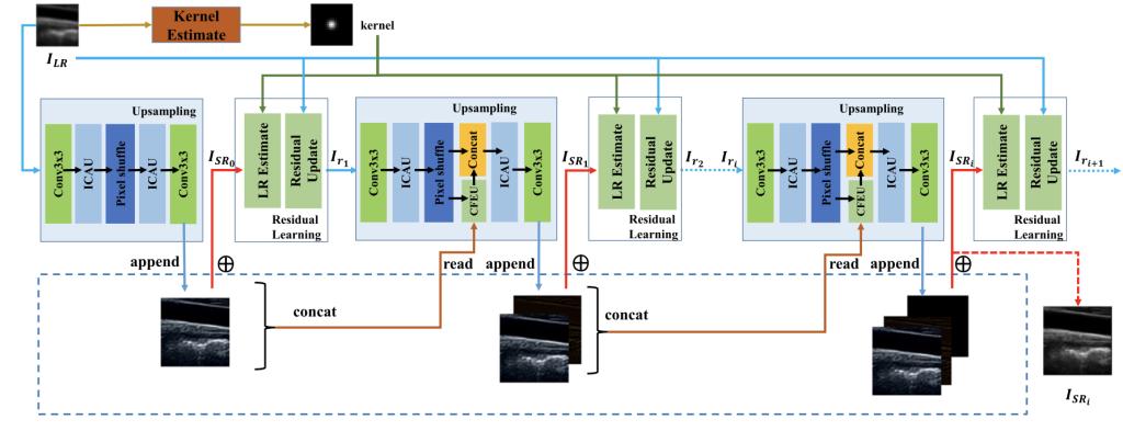 对于超声临床诊断而言,超声影像超分辨(ultrasound image super-resolution)可以提高超声成像质量,从而提高疾病诊断的准确性。但由于传感设备和传输介质的差异,实际场景中超声成像其退化模糊过程是未知且不可控的。为了解决未知退化场景超声医学影像准确超分辨的难题,团队提出了一种有效的基于退化模糊自估计且结合渐进残差学习和记忆提升机制的超声影像盲超分方法,初步实现了真实场景超声影像准确超分辨。相关研究成果发表在人工智能、计算机医学信息交叉领域一区TOP期刊《IEEE Journal of Biomedical and Health Informatics》(IF: 7.7)。公司为论文第一完成单位,必一运动刘恒教授、硕士生刘建勇分别为论文第一、第二作者。