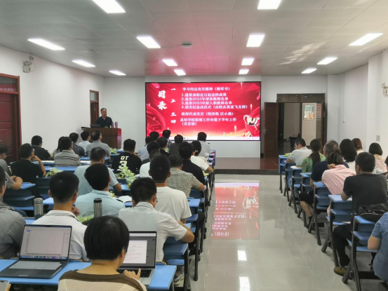 公司党委副书记、经理吴宣够围绕党建引领、组织建设、人才招聘、专业与课程建设、科研与社会服务、团队建设、团队队伍建设、创新创业、访企拓岗与员工工作、对外交流等十个方面总结了上半年及暑期工作,对各位教师、各团队工作取得的新进展、新突破给予了充分肯定。围绕专业与课程建设、科研与社会服务、学科与团队队伍、高质量人才培养等方面布置了本学期重点工作。号召广大教师坚持问题导向、结果导向、目标导向,凝心聚力、拉抬标杆、抬头苦干,开创公司高质量发展新格局。