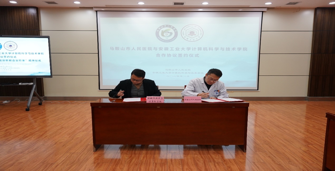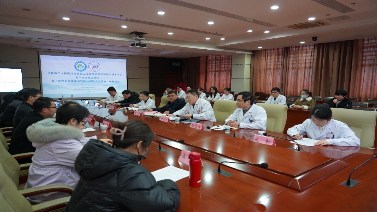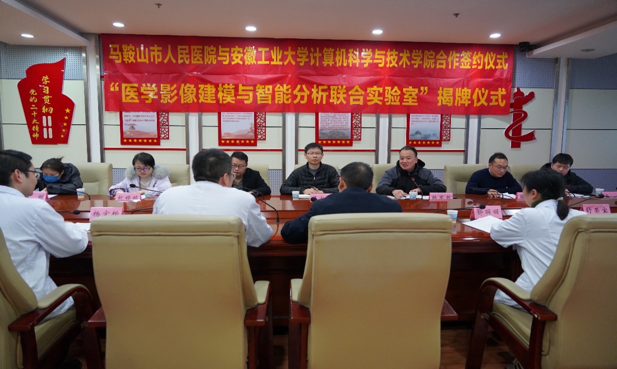 1月2日,马鞍山市人民医院与公司合作协议签约仪式暨“医学影像建模与智能分析联合实验室”揭牌仪式在人民医院门诊楼会议室举行。人民医公司党委书记程根,党委委员、副经理(主持工作)何永胜,科教科科长鄂丽丽,影像科副主任(主持工作)杨宏楷,影像科副主任舒荣宝,影像科诊断医师戚轩、顾潇磊,必一运动公司科研处处长(兼公司党委副书记、经理)吴宣够,公司党委书记韩军书,副经理黄俊,软件工程系主任薛伟,软件工程系副主任杭婷婷,人工智能系教师唐振、孟頔等出席了仪式。何永胜主持了签约仪式。