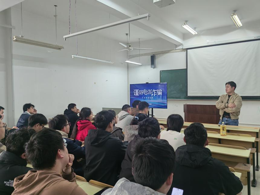 为进一步做好校园防范电信诈骗工作,贯彻落实公司对员工安全教育工作的重点要求,增强员工防诈骗的意识和能力,构建风清气正、和谐平安的校园环境。2024年3月20日上午,我院2022级人工智能英才班召开“防电诈”主题教育班会,英才班全体同学参加本次会议,辅导员鲁齐老师主持会议。