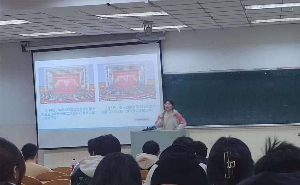 冯晟从“两会知识科普”、“全国两会常用词”、“今年两会新看点”三个方面展开宣讲。其中在解读“政府工作报告中的‘青年大礼包’”中强调,政府工作报告更首次提出了开展“人工智能+”行动,计算机的未来发展前景无比广阔,同学们要对行业前景充满信心。针对毕业年级党员,她提出党和政府对就业问题高度重视,希望大家在未来的学习生活和职业选择中,能够牢记总书记的嘱托,到祖国最需要的地方去,到人民最需要的地方去。支部员工党员朱卓越表示,全国两会不仅为国家的发展描绘了宏伟蓝图,更是为广大青年指明方向,我们要担起青年之责,勇于创新,积极行动,谱写新华章。