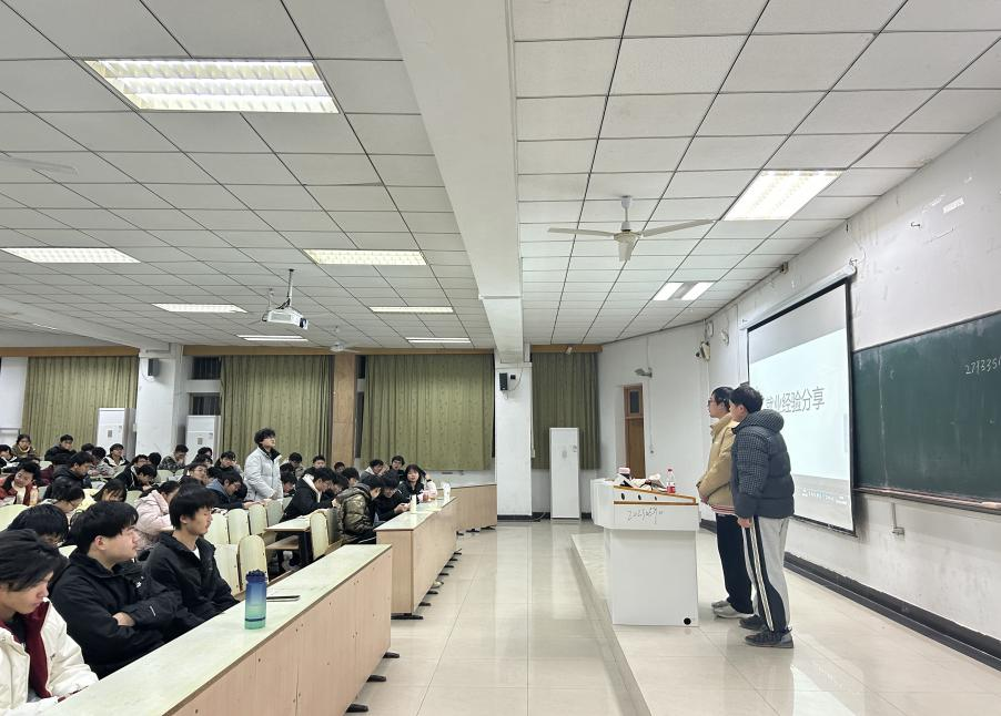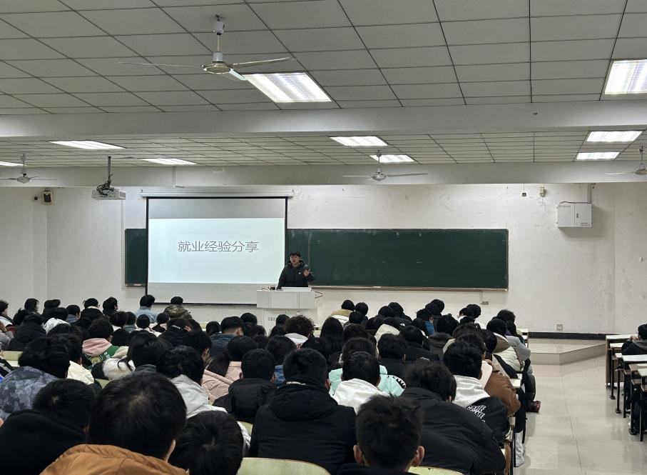 张佳乐以“如何全方位提升就业能力”为主题,分享了在校期间做项目、打比赛、找实习的过程,以及这些经历为秋招面试带来的帮助;